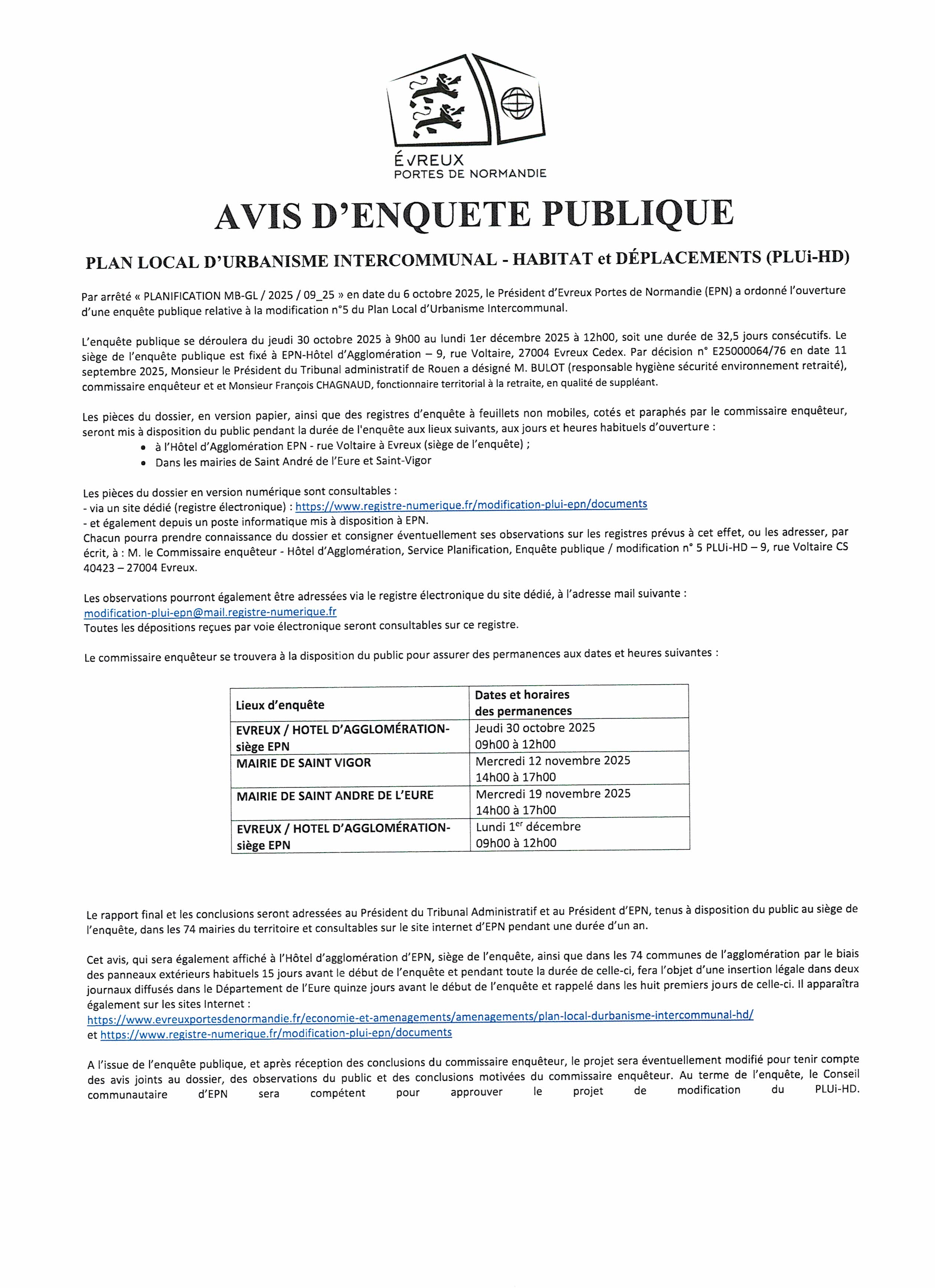 AVIS ENQUETE PUBLIQUE PLUi