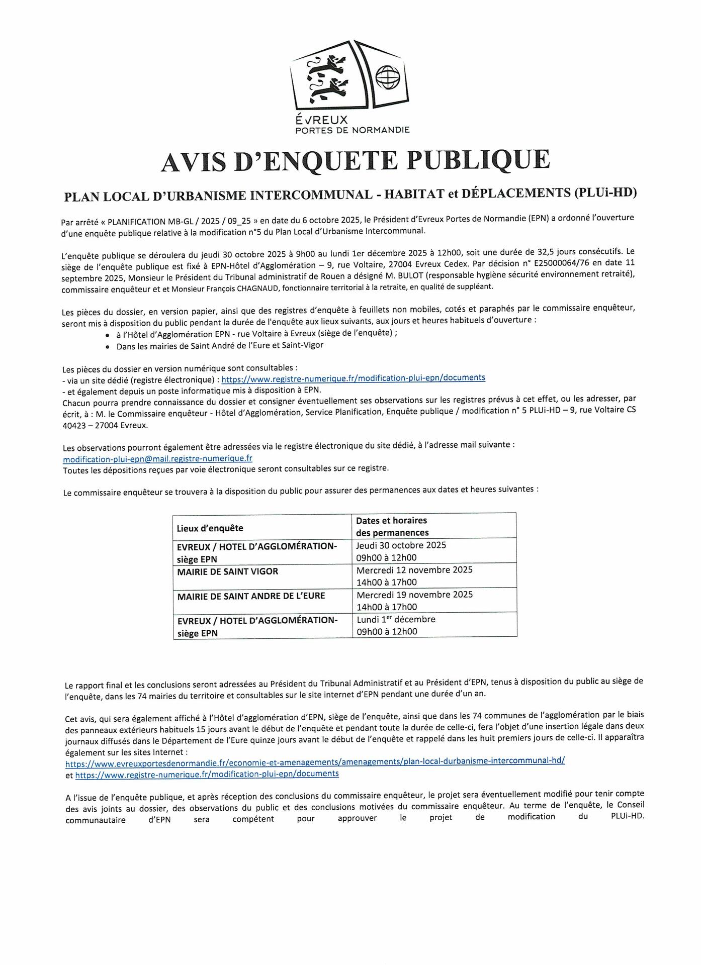 Une enquête publique se déroulera du 30 octobre 2025 à 9h et jusqu'au 1er décembre 2025 à 12h.