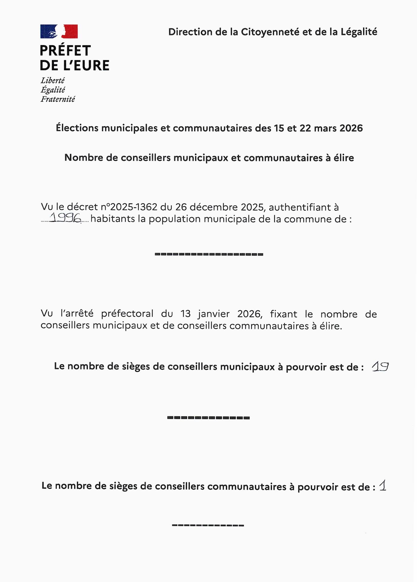 Vous trouverez ci-dessous, la publication du nombre de conseillers municipaux et communautaires à élire pour les élections municipales 2026.