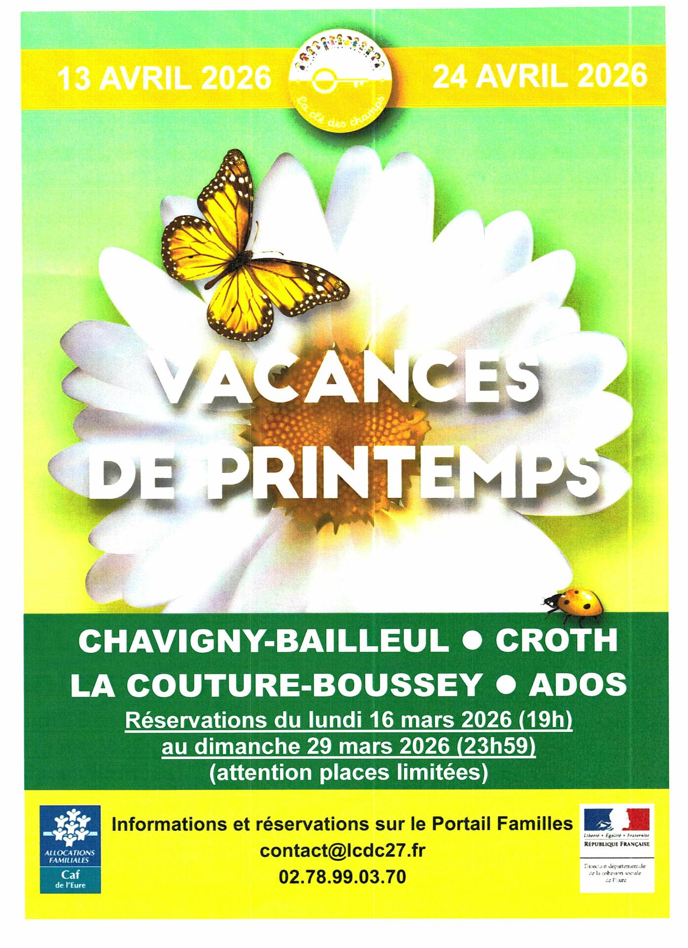 INSCRIPTION AU CENTRE DE LOISIRS VACANCES DE PRINTEMPS