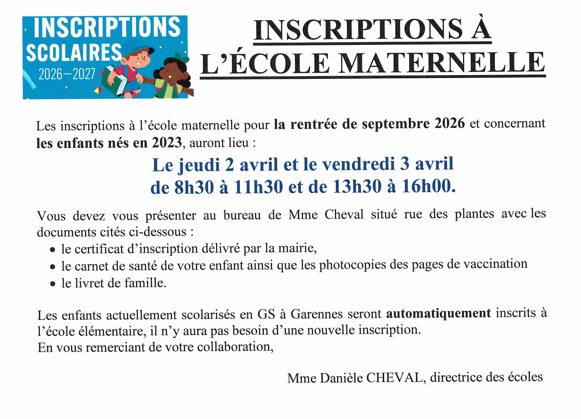 INSCRIPTIONS SCOLAIRES RENTREE 2026/2027